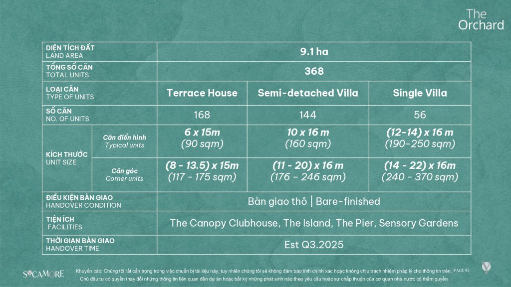 GIỚI THIỆU GIAI ĐOẠN 1: PHÂN KHU THE ORCHARD – DỰ ÁN SYCAMORE