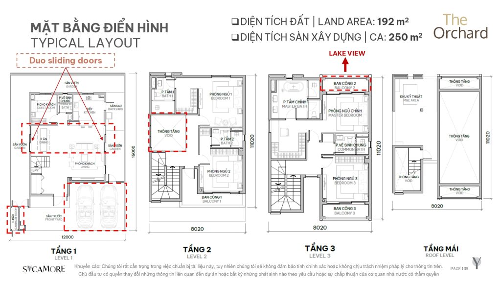 - Diện tích đất căn điển hình: (12-14)x16m (190-250m2)
